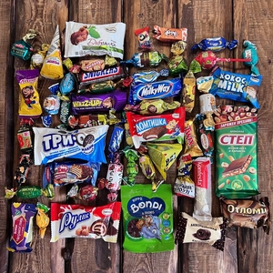 - состав: шоколадные конфеты, леденцы. 59 наименований.