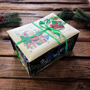 1. Новогодний подарок в деревянной коробке с УФ печатью и 3D эффектом (переливается на свету).